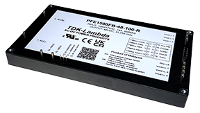 TDK Corporation (TSE:6762) announces the introduction of the TDK-Lambda 1500 W rated PFE1500FB AC-DC power modules. This third-generation series accepts a wide 85 to 305 Vac input range, providing the ability to operate on a 277 Vac nominal input to power industrial, lighting, and building automation equipment. The module’s metal baseplate allows operation where convection or forced air cooling is not feasible, with the ability to be mounted in a sealed outdoor enclosure or where liquid-cooling is preferred. The five-sided case also provides easier thermal management and lower radiated EMI.